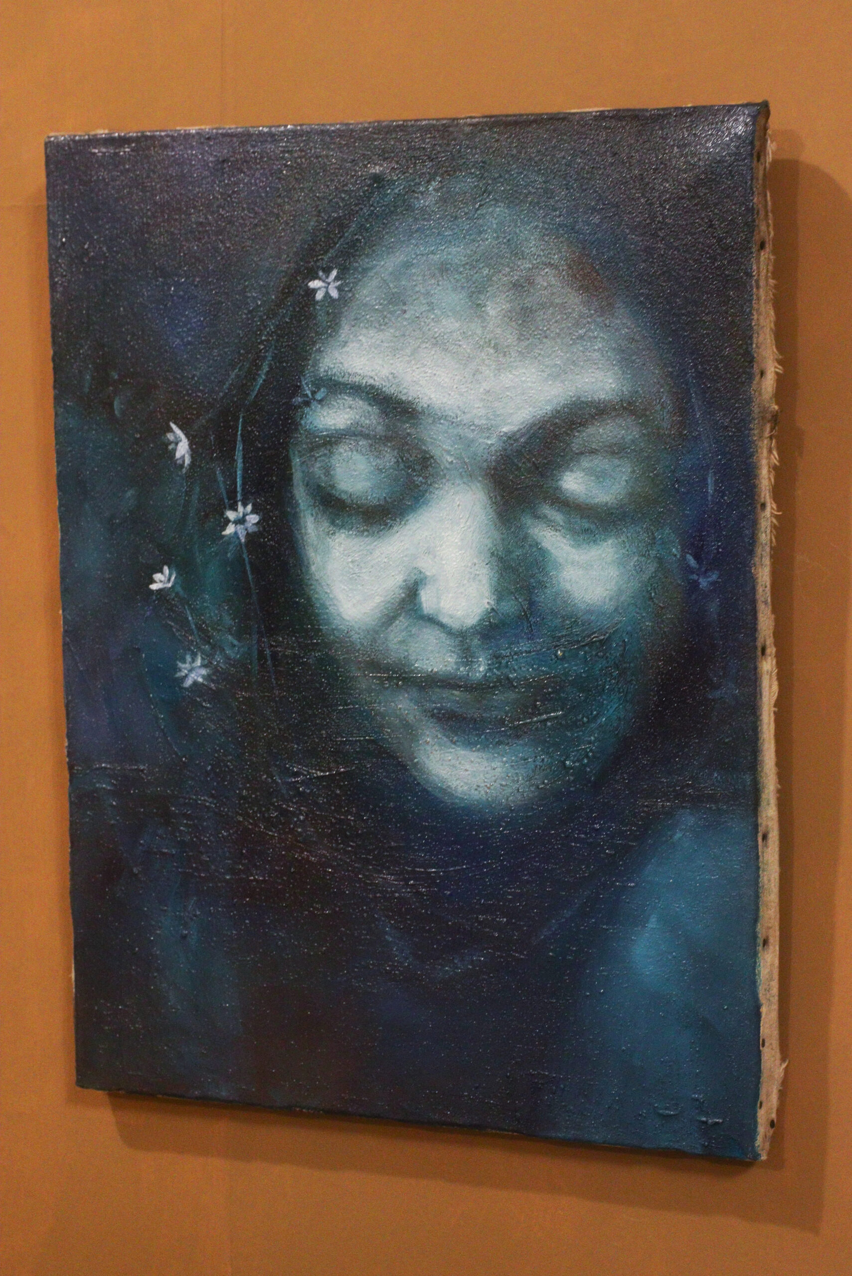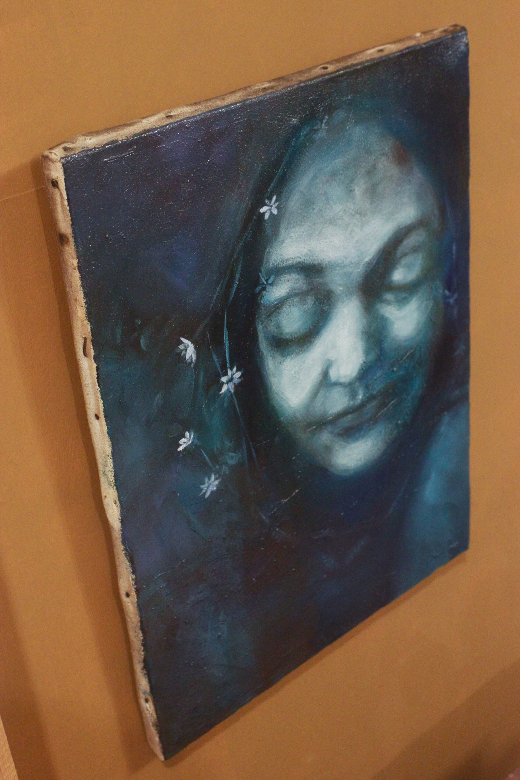 Teos on maalattu kierrätyksestä hankitun vanhan maalauksen päälle