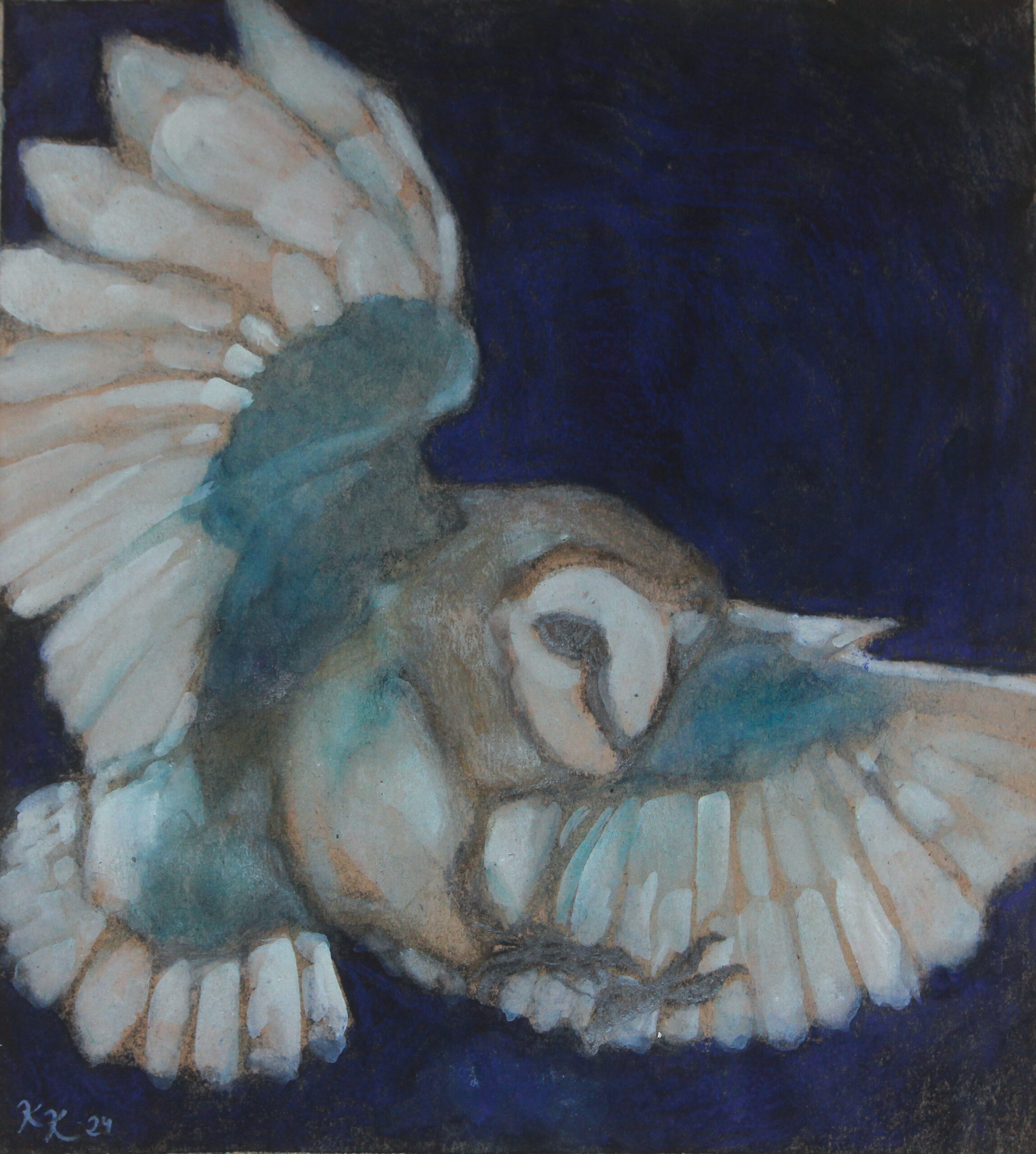 Akvarelli, kuivapastelli & lyijykynä paperille